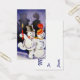 Ilustração vintage de Natal com imagem de dois bonecos de neve dançando segurando velas. O brilho da luz das velas cria sombras no fundo. O texto diz, Felizes Festas!