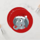 Festas personalizadas de Natal convidam design com um cartoon chefe de um elefante com o Chapéu do Pai Natal em fundo vermelho; design de Natal ilustrado para crianças por Maxi Harmony; com texto personalizável modelo