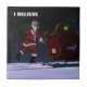 Acredita em Papai Noel, mostra Papai Noel no telhado de uma casa depois de entregar presentes. O texto personalizável que lê "EU ACREDITO" também é exibido.