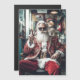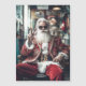 Uma reviravolta moderna no clássico Papai Noel, esta versão elegante apresenta o Papai Noel usando um terno luxuoso vermelho e dourado bordado, óculos de sol circulares ousados e uma barba perfeitamente aparada. Fazendo uma pose com um sinal de paz, ele exala um charme contemporâneo e descolado das festas de fim de ano em um ambiente aconchegante e festivo.