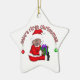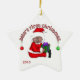 Você pode facilmente mudar o ano neste personalizável ornamento de natal de Papais noeis Afro-Americanos Baby 1rua antes de fazer pedidos. Possui um bebê em um terno de papai noel vermelho e boné de estocagem e texto que diz "O Primeiro Natal do Bebê!".