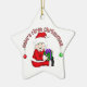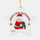 Você pode facilmente mudar o ano neste Papais noeis asiáticos personalizáveis Baby 1rua natalino keesake antes de fazer pedidos. Possui um bebê em um terno de papai noel vermelho e boné de estocagem e texto que diz "O Primeiro Natal do Bebê!".