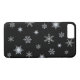 Cristais e gemas ilustrados decoram os flocos de neve brancos em um fundo preto, fazer este estojo de inverno como presente perfeito.