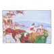 Papai Noel está voando no trenó e na rena. O trenó de natal está cheio de presentes. Uma bela cena de natais vintages! Clique em Personalizar para personalizar o produto presente!