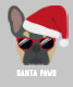 Papais noeis Paws vem para a cidade! Este buldogue francês azul e bronzeado está pronto para as férias de Natal vestindo um chapéu vermelho de Papai Noel e, claro, não esquecendo os óculos de sol na moda.