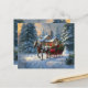Papais noeis conduzindo um trenó de um cavalo para entregar presentes de Natal em uma pequena cidade