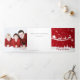 Uma imagem bonito do Pai Natal tradicional e da sua rena em branco e silenciada contra um céu vermelho vivo está na frente desta tripla carta de Férias. O horizonte tem pinheiros silenciados, neve deriva e o texto em vermelho que diz "Feliz Natal". O dentro tem duas modelos para suas próprias fotografias, e o centro diz "Jingle All the Way" mais seu texto e assinatura personalizados. No flape traseiro está outro modelo de foto, fazer três no total. O centro de trás também tem um campo de texto personalizado: atualmente existe um verso de script, mas você pode facilmente alterá-lo para qualquer coisa que quiser, incluindo uma mensagem pessoal. Depende de você!