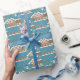 Este papel de embrulho de Natal agradará aos seus amigos e família esta temporada de férias. O design apresenta um fundo azul com um boneco de neve e um workshop de Papais noeis no Polo Norte. Papel de presente de excelente para crianças!
