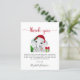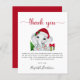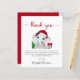 Cartões de agradecimentos de chá de menina bonitinho e amigável com orçamento com "obrigado você" em um roteiro na moda vermelho com baloiços e uma aquarela fofa de um elefante bebê com chapéu de Papai Noel, uma árvore de Natal, uma cana doce vermelha e verde e presentes. Personalize o seu obrigado em uma simples topografia ou deixe vazio para uma nota manuscrita.