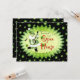 As estrelas verdes e as notas musicais com Papais noeis de música alegre Elf tocando o banjo num divertido convite à casa de Natal. As informações da casa aberta na parte traseira da placa podem ser personalizadas na modelo.