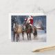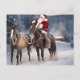 Papais noeis ocidentais num cartão postal de cavalo para mensagens de feriado.