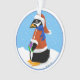 Este pinguim bonito está jogando Papais noeis para dar um presente muito especial. Design de LD Gonzalez, 2021.
