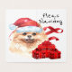 Um cobrir simples e minimalista a esta carta é adorado com quatro florescimentos de esquina e um modelo preto que diz: Feliz Natal. O dentro tem uma bela ilustração aquosa da Pomeraniana mais bonita; pom de brinquedo; cão vestindo uma aquarela que o Papai Noel bordava com pelo branco sujo. Ele está rodeado de presentes de Natal bonito, embrulhados com belos arcos e fitas e a saudação festiva; pulgas navidog; à direita. Personalize a saudação para atender às suas necessidades.