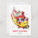 Este cartão festivo não fotográfico apresenta uma ilustração vintage de Papais noeis em um foguete em vez de um trenó tradicional. A saudação na frente do cartão diz "Feliz Natal" mas é editável e pode ser mudado para qualquer coisa que você quiser. Também há espaço para seus nomes e para o ano. Na parte traseira do cartão está um fundo festivo vermelho e branco de faixa diagonal que pode ser removido/editado... você também pode adicionar outra foto e/ou texto adicional no verso.