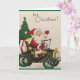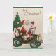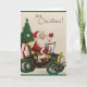 Vintage / Cartão de saudação de Natal Retroativo. Adorável Papai Noel entregando presentes de Natal em um modelo T. É Natal!