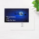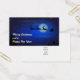 Feliz Natal e Feliz ano novo. A imagem na frente é uma ilustração festiva de natal. Papais noeis no seu trenó e suas renas voando através do céu azul escuro da noite. Uma lua brilhando ilumina o céu e pode-se ver estrelas cintilantes ao redor.