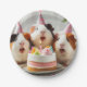 Um prato de festa com uma doce fotografia de cobaias celebrando um aniversário com chapéus de bolo e festas, você pode encontrar cartões correspondentes no compro, assim como pode usar convites ou cartas de agradecimento.