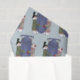 Casal de neve balnear em ambos os lados de um trenó. Eles estão vestidos para o calor em casacos, chapéus, mitenes e lenços. Mostrado com um fundo azul.