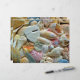 Papel de álbum de recortes de conchas com fotografia de conchas naturais em ambos os lados. O papel horizontal é de 8,5 x 11 polegadas com opções de atualização de papel. As conchas da praia nesta imagem incluem um pedaço de dólar de areia branco, concha de oliva, vieiras rosa, uma concha de relógio solar, ouriço-do-mar e mais fragmentos em azul, rosa, bege e branco-esverdeado. Perfeito para escrever ou fazer scrapbooking sobre férias na praia ou viagem à costa marítima.