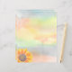 Este papel de papelaria é decorado com uma coloração d'água colorida em ambos os lados e um girassol amarelo. Original Watercolor © Michele Davies.