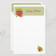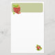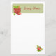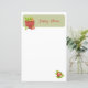 Um simples design com um boião de compota de morango próximo ao seu nome em um banner verde folha e um morango solitário enfeita o canto inferior direito. A design é repetida no sentido inverso, mas sem o seu nome. Um bom papel de papel de carta personalizável, adequado para escrevendo letras ou escrevendo uma nota, uma receita ou pensamentos. Uma boa ideia para um presente para um amigo para um aniversário ou natal.