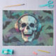 Elevem seus artesanatos a um nível totalmente novo de frieza gelada com o nosso Papel de Decoupage do Rocking Skull e do Bats. Este papel de desacoplamento ocular apresenta um design dinâmico com morcegos voando em segundo plano e um crânio balançando com fones de ouvido ligados. O vibrante esquema de cor roxo, verde e azul adiciona um toque ousado e cativante aos seus projetos.