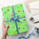 Este papel de embrulho de presente de Natal bonito apresenta dinossauros junto com os motivos populares de Natal!