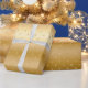 Papel Dourado De Presente Com Bolinhas Metálicas Brilhantes.