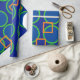 Um envoltório a recordar! Papel de embrulho azul e alaranjado geométrico corajoso.