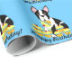 Divertimento e feliz aniversario lunático! Boston Terrier com papel de envolvimento amarelo dos cupcakes