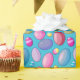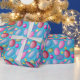 Toneladas de diversão para todos com este papel de embrulho de ovo de Páscoa. Os ovos estão em várias cores, incluindo azul, vermelho, rosa, roxo e amarelo em fundo azul.