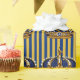 Papel de embrulho azul e dourado para chá de bebê