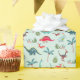 As crianças vão adorar este dinossauro colorido com padrão de chapéus de festa em presentes e papel de embrulho para um aniversário ou qualquer outra ocasião. Arte original de Caroline Bonne Müller