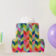 Características deste design um design moderno de herringbone em uma variedade corajosa de cores que incluem vermelha, verde, azul, alaranjada, amarela, cor-de-rosa e de roxo.
