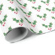 Os seus presentes de Natal serão alegres e divertidos com este papel de embrulho simples e moderno com folhas de azevinho verdes e frutos vermelhos formando um padrão repetitivo sobre um fundo branco. As folhas de azevinho têm um contorno dourado.
