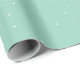 Papel de embrulho com padrão de floco de neve verde simples. O fundo é verde brilhante com flocos de neve brancos simples.