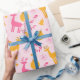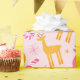 Padrão perfeito de Natal com renas cor-de-rosa e douradas e bolas de Natal. Padrão festivo de inverno em estilo plano com neve para embrulhar papel.