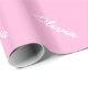 Papel de embrulho cor-de-rosa com nome de bebê personalizado. Boa ideia para presentes elegantes de chá de fraldas. Modelo de tipografia de script elegante.