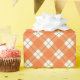Este rolo do papel de embrulho caracteriza um design alaranjado bonito da xadrez em um fundo de creme.