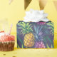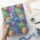 Padrão ousado de abacaxi tropical com pinceladas pictóricas em roxos, rosas, amarelos e verdes vibrantes contra um fundo roxo profundo. Este design atraente apresenta abacaxis superdimensionados com folhas exuberantes em um estilo artístico, quase impressionista. Perfeito para celebrações de verão, temas tropicais e quem ama padrões de frutas brilhantes e alegres.