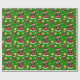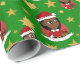 Papel de embrulho de Natal com ilustração de uma linda e sorridente menina negra feliz com cabelo comprido, ela está vestindo fantasia vermelha e branca de Papai Noel e segurando um presente; com texto editável modelo para seu nome ou mensagem, design de Natal com fundo verde