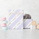Listras roxas e brancas e flores são o embrulho de presente de casamento perfeito que a sua noiva irá amar.