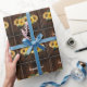 Embrulhe presentes para os noivos com um rolo de Papel de embrulho de casamento Girassol Rústico. O design do papel de embrulho apresenta um fundo de madeira rústica com um buquê elegante de girassóis. Papelaria de casamento e presentes adicionais disponíveis com este design também.