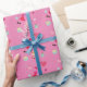 Papel de embrulho de dia de os namorados com corações, balões, chocolates, ursinho de pelúcia e muito mais.