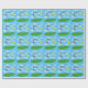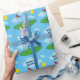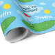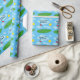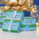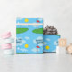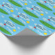 Putt colocou papel de embrulho de Festa de aniversário de golfe para crianças. Ilustração de presente colorida divertida para crianças. Adequado para meninos e meninas. Comemorações do temático desportivo com atividades para crianças pequenas. Um campo de golfe verde alegre com bandeira, bola, nuvens, céu azul e sol. Modelo de tipografia bonita.