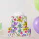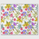 Flores coloridas e bonito com fundo de rosa claro. Flores roxas, amarelas e azuis com verde.
