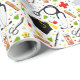 Papel de embrulho criativo para presente de médico graduado para celebração de formatura da faculdade de medicina com suprimentos de saúde e tam de formatura.