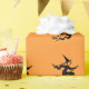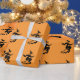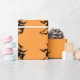 Festa de Dia das Bruxas de laranja e preto embrulhando papel com bruxa sobre vassoura. Adicione seu próprio texto personalizado.