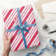 Listras de peppermint decoram este papel de embrulho de Natal festivo. O design é de arte original.