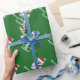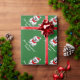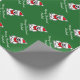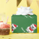 Feliz papel de embrulho de Natal com desenho animado de urso polar de Papai Noel. Padrão personalizável com saudação ou desejos e nome personalizados do Xmas. Design branco e engraçado com chapéu vermelho de Papai Noel e cachecol fofo. Cor de fundo personalizada. Design de Natal personalizado verde e vermelho.